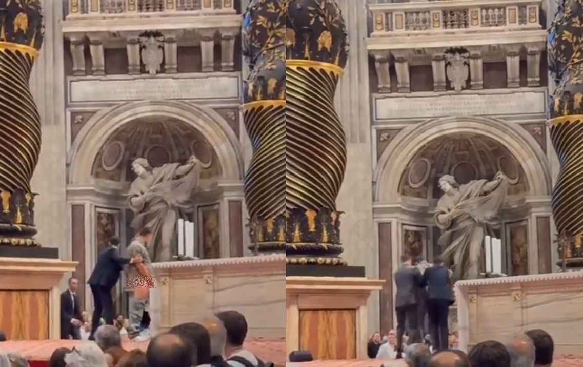 一名男遊客在梵蒂岡聖伯多祿大殿參觀聖壇時,竟然在數百名其他信徒與遊客面前,當眾脫掉褲子並且小便,誇張行為令在場所有人震驚,保全人員立即衝上前制止,最後將他帶走。