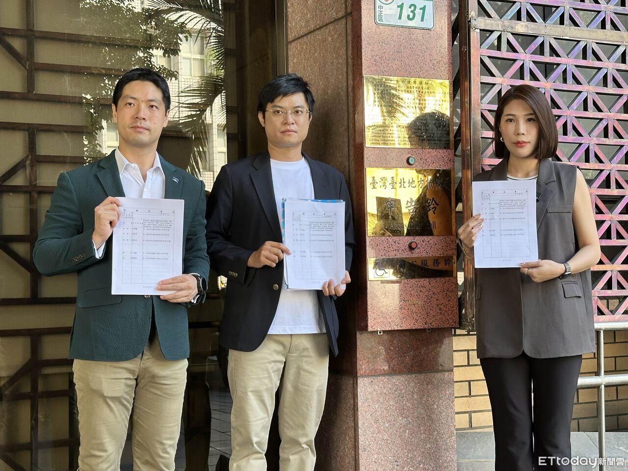 ▲青年監督聯盟發起人陳又新(左起)、執行長許譽騰、前記者馬郁雯告發王鴻薇與助理涉貪。(圖/記者劉昌松攝)