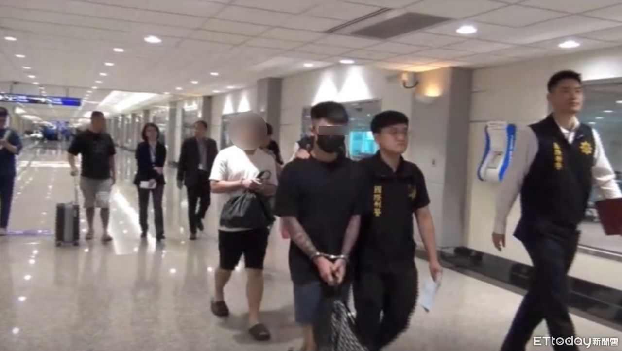 ▲萬源人蛇集團重要幹部范宇恆,遭刑事局國際刑警科幹員押解返台 。(圖/記者張君豪翻攝)