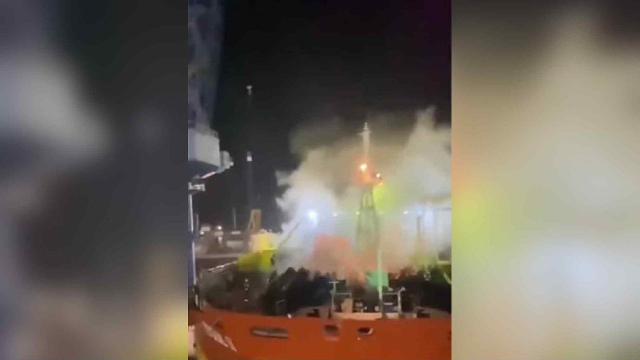 ▲油輪在維修期間起火爆炸。(圖/翻攝X)