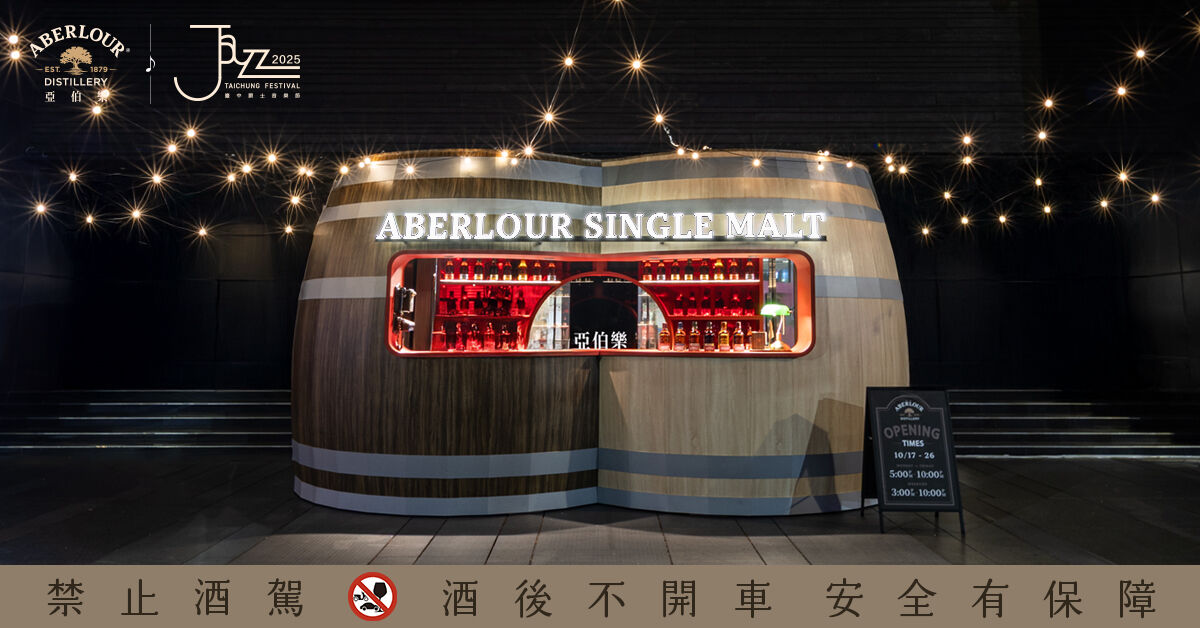 亞伯樂「伯樂酩曲」品酩空間,即日起於臺中爵士音樂節盛大展開,亞伯樂更提供多重試飲體驗與購買優惠方案予全台酩家:只要加入保樂力加酩家沙龍 LINE官方帳號,即可兌換亞伯樂雙桶熟成12年(20ml) 或A’bunadh 雪莉桶原酒(20ml)或亞伯樂雙桶熟成12年Highball(150ml);拍攝臺中爵士音樂節亞伯樂攤位照片,上傳FB/IG/Threads任一平台,即可獲得亞伯樂Highball杯或一口杯。