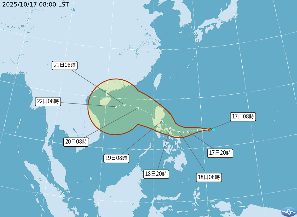 至於颱風是否發布颱風警報,謝佩芸指出,依照目前路徑來看,因距離台灣遠,發布颱風警報機率偏低,但後續路徑有不確定,除非往北通過巴士海峽才會離台灣比較近,目前路徑預測將通過呂宋島,發布警報機率低,不過雖然沒有警報,但周日和下周一對台灣帶來的降雨和強風影響明顯。