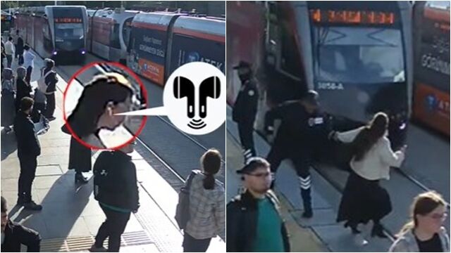 土耳其開塞利(Kayseri)發生驚險事件,一名女子試圖穿越電車軌道時,疑似因為戴著耳機,未能察覺周遭環境,差點就被迎面而來的電車撞上,所幸在千鈞一髮之際,被保全及時拉開而脫險。