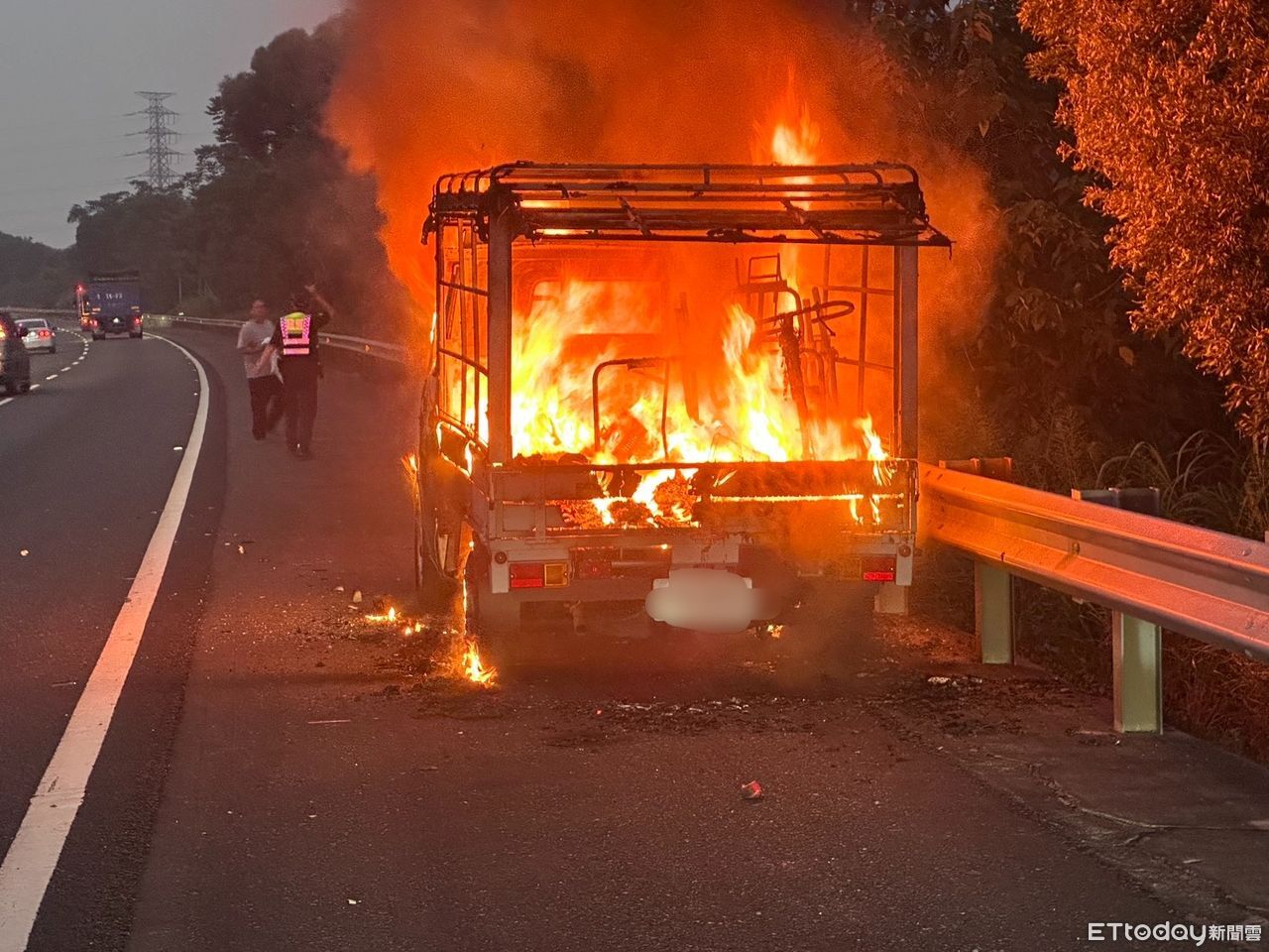 國道3號今(17)日下午傳出火燒車意外!一輛自小貨車於17時31分行經北向264公里外側路肩時,疑似不明原因突然起火燃燒,火勢猛烈,濃煙竄天,嚇壞其他駕駛。