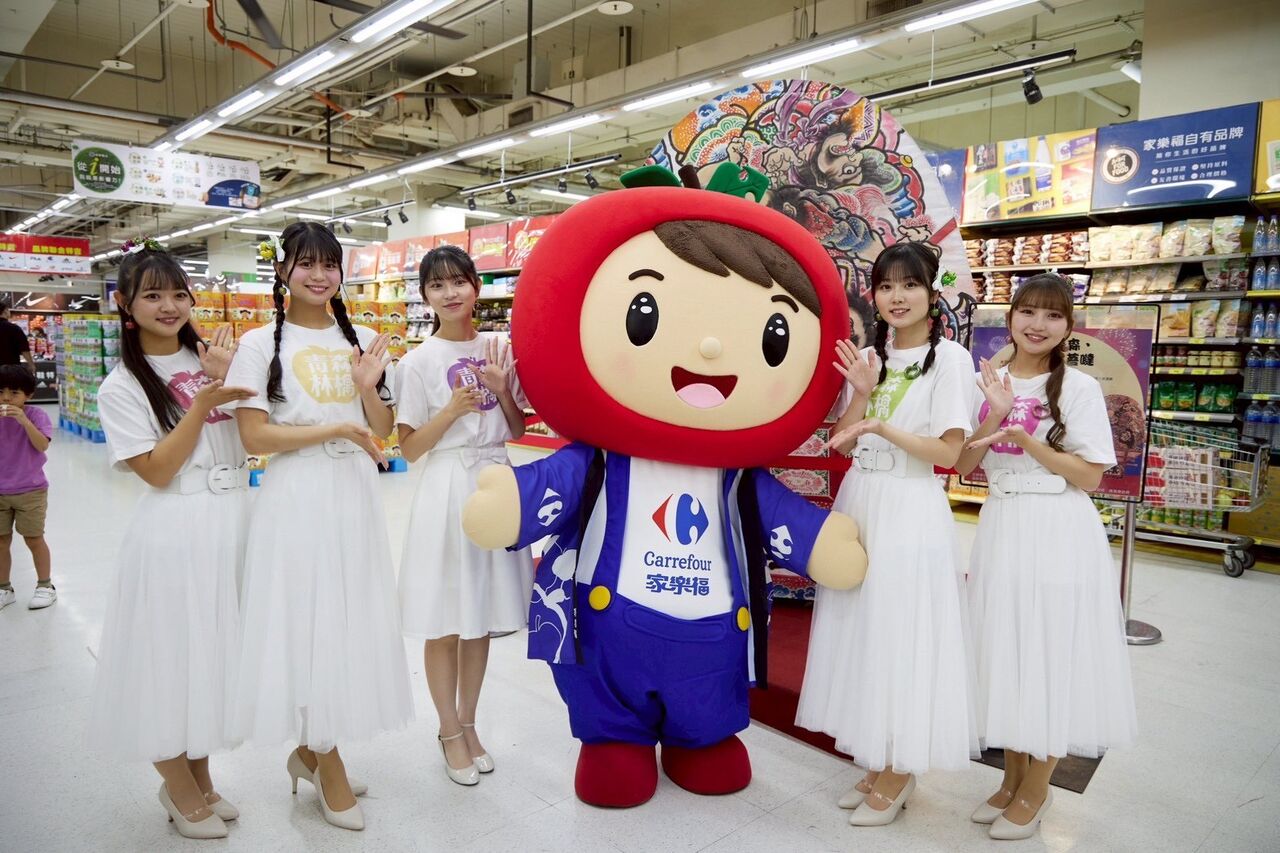 日本青森縣知事宮下宗一郎率相關團隊訪台,今日在家樂福分享首批蘋果,此外日本青森縣偶像女團「蘋果少女(りんご娘)」、ジョナゴールド(JonaGold)也到現場演唱,還有家樂福首次推出生鮮吉祥物「蘋果醬」公開亮相。