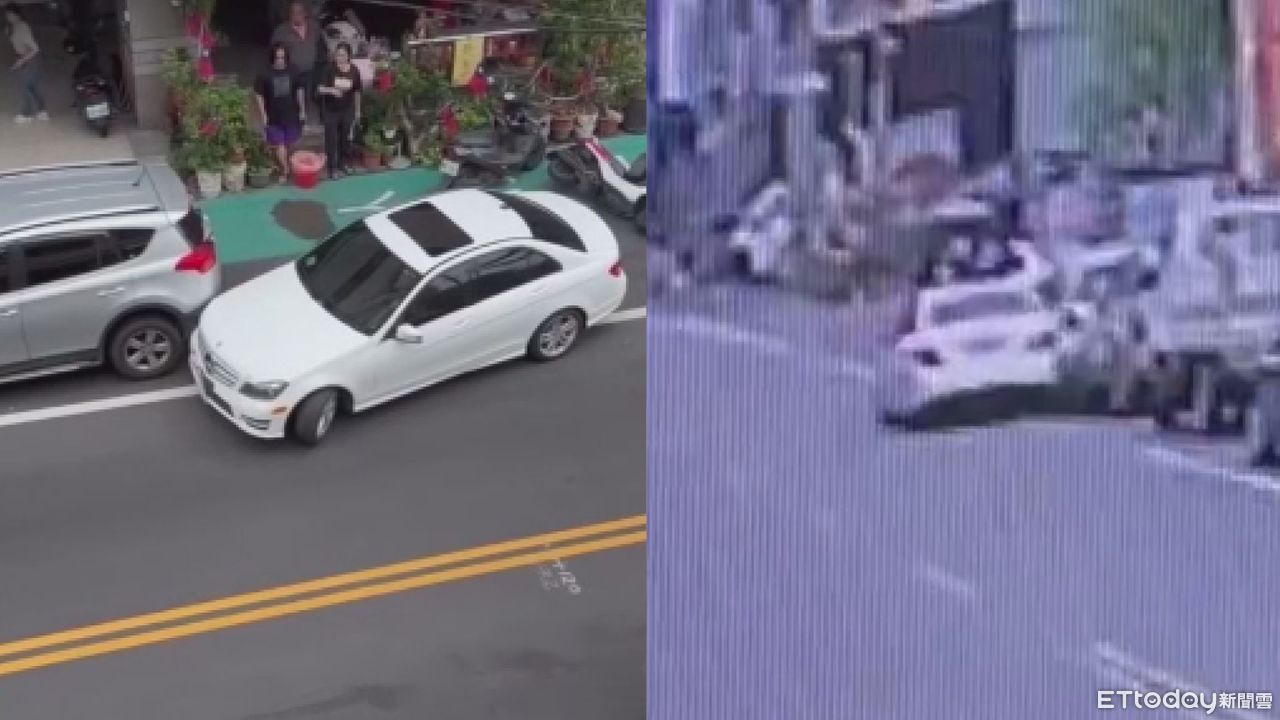 監視器畫面顯示,62歲宋姓女子上午開著白色賓士車行經中華路時,不明原因緩慢偏離車道,先是撞上一輛路邊停放的汽車,但卻未下車察看,僅短暫停留數秒便繼續往前開,接連又擦撞多部汽、機車。路旁民眾嚇傻尖叫,所幸警方迅速到場將其攔停並喝令下車接受盤查。