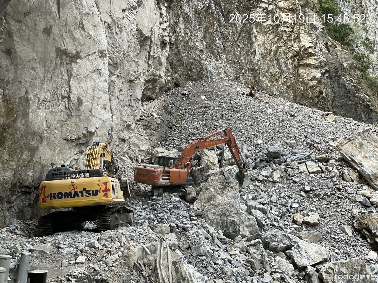 ▲施工廠商18日已抵達現場進行刷坡作業,確保在安全下展開壩體導流與降挖減災作業。