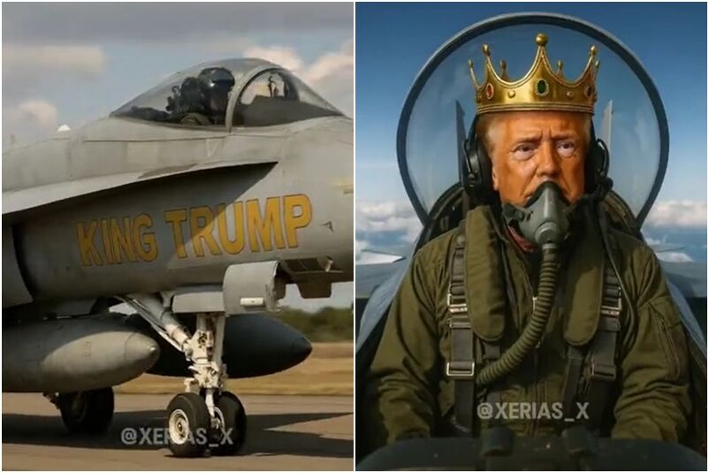 全美各地串連發起「無王日」(No Kings Day)示威遊行,反對川普政府強硬執法,對此總統川普在深夜發布一段誇張的AI生成影片,將自己化身成戰機飛行員,頭戴王冠,飛行在高空對著抗議者「炸屎」,再度引爆爭議。