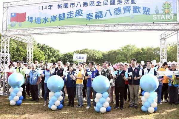 114年桃園市八德區全民健走活動,19日在八德埤塘自然生態公園熱鬧登場,吸引近萬名市民熱情參與,沿著生態水岸完成約4公里的健走路線,為八德注入滿滿的運動活力與社區凝聚力。