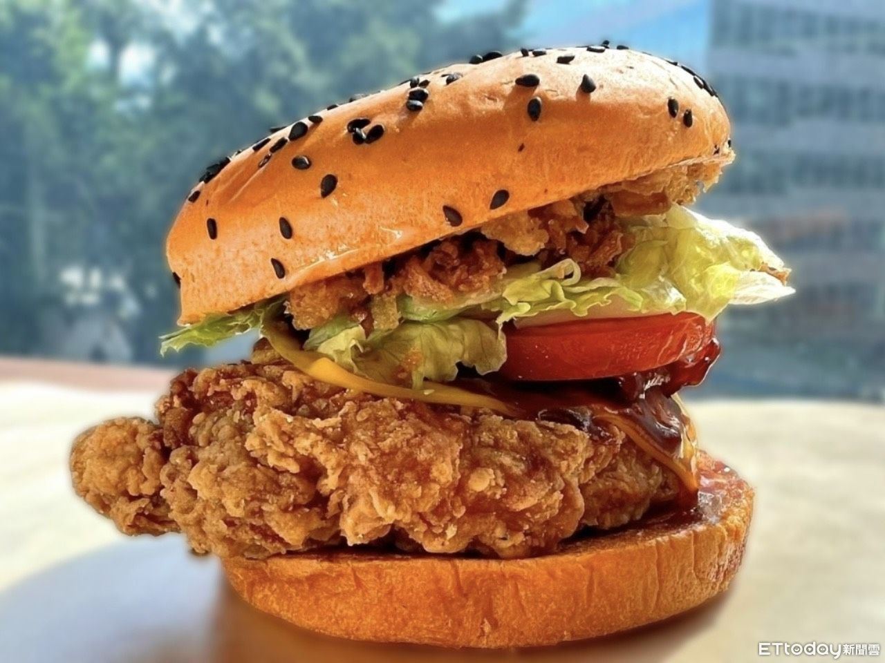 ▲▼華堡、雞排堡升級變成橘色麵包配黑色芝麻,打造萬聖節氛圍。