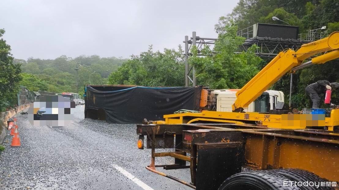 ▲新北市瑞芳區台62線12.3k發生翻車意外。(圖/記者郭世賢翻攝)