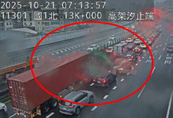高公局表示,今天清晨5時41分,國道1號北向12.4K、汐止系統路段,發生2輛大貨車、1輛小貨車、1輛自小客車事故,處理時間較長,目前暫時封閉雙向內側2車道,南下壅塞回堵11公里,請用路人提早改道,避開壅塞路段小心行駛。截至早上7時20分,事故仍未排除。