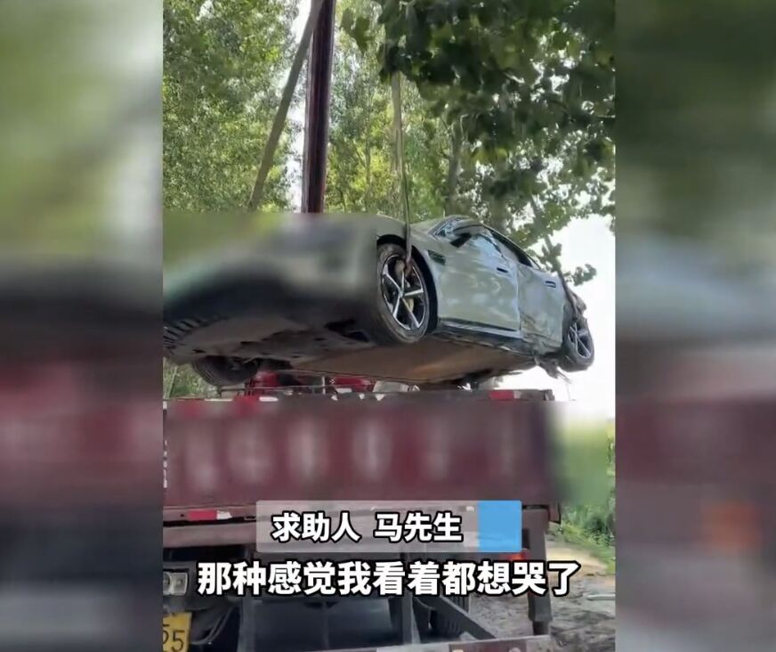 馬男指出,牌友當時以140公里的時速行駛,為了躲避路口冒出的三輪車失控,衝入一個大坑裡面,「看著我的車子被從大坑吊起來,我都快哭了,我老婆還在旁邊大吵大鬧,對我又打又踢,責怪我把車借給別人。」