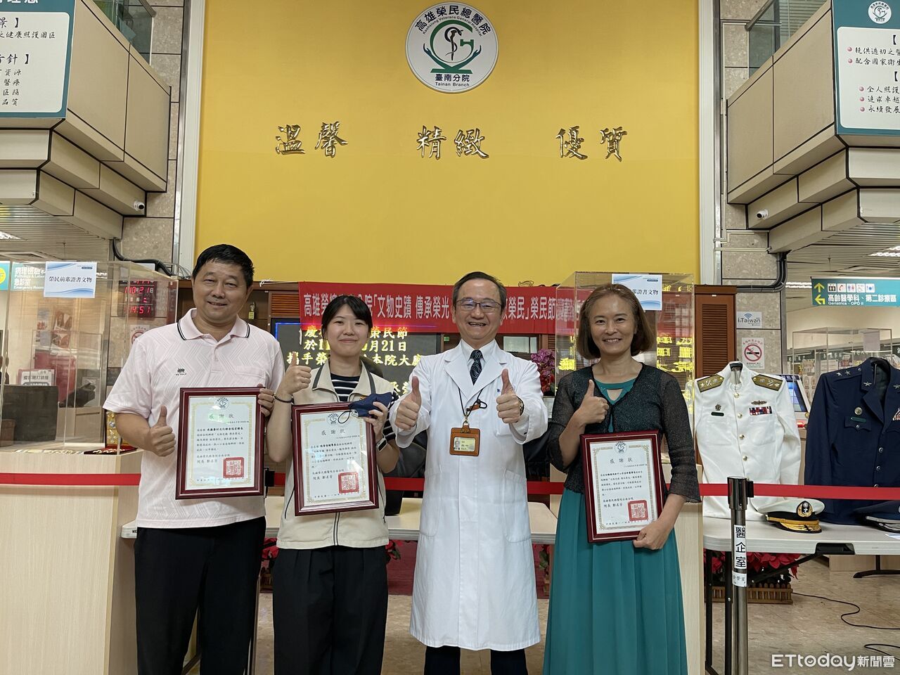 為慶祝榮民節,高雄榮民總醫院台南分院21日下午於醫療大樓大廳舉辦《傳承・致敬》慶祝大會,由院長鄭名芳主持,院內一級主管與員工代表出席,場面莊重又溫馨。活動以「傳承與致敬」為主軸,透過展覽、影像及互動體驗,向社會呈現榮民對台灣建設的貢獻,並期盼弘揚其堅毅不屈的精神。