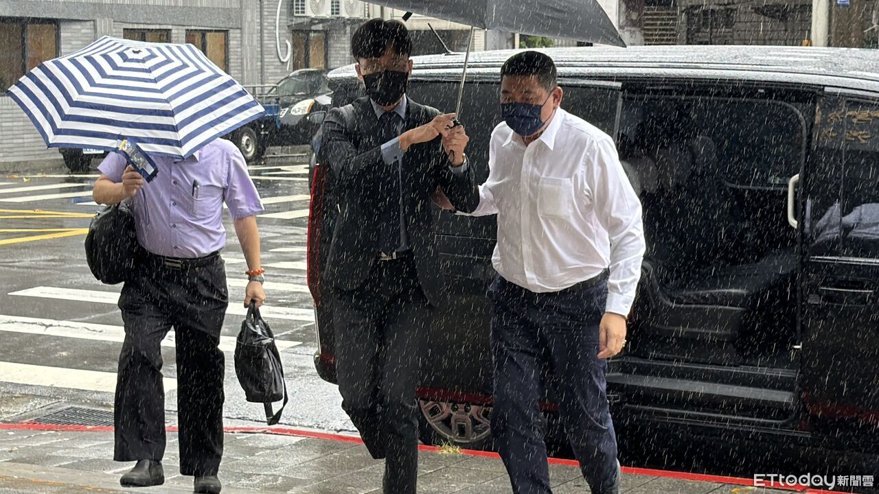 ▲陳宣裕今赴士林地院開庭,一旁律師替其撐傘。(圖/記者黃宥寧攝)