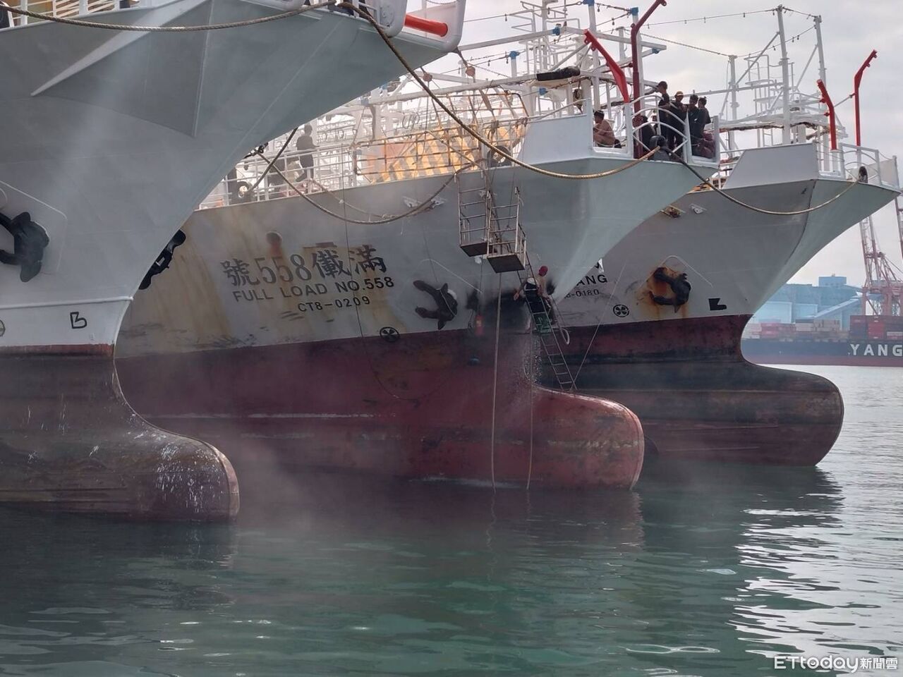 消防局獲報後,火速派出多輛消防車與人員趕抵現場搶救,現場火勢猛烈,烈焰夾雜濃煙從甲板竄出,消防人員立刻架設多條水線全力灌救,並協助排煙降溫,避免火勢波及其他船隻。