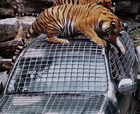 ▲駕駛須開車進東北虎區餵食。(圖/翻攝自微博)