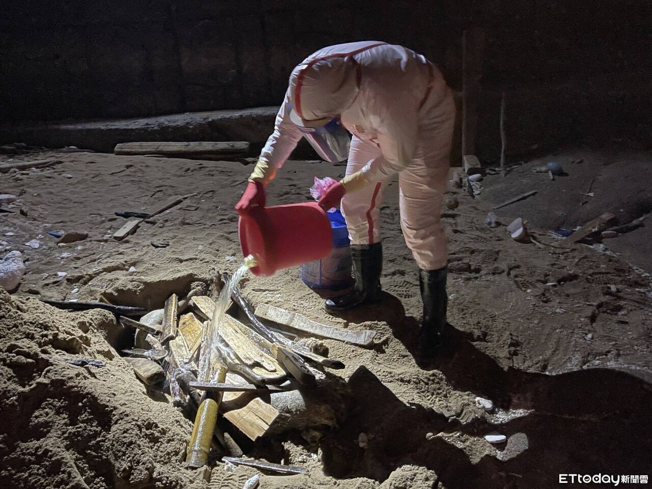 ▲防疫人員到場採樣。(圖/記者鄭逢時翻攝)