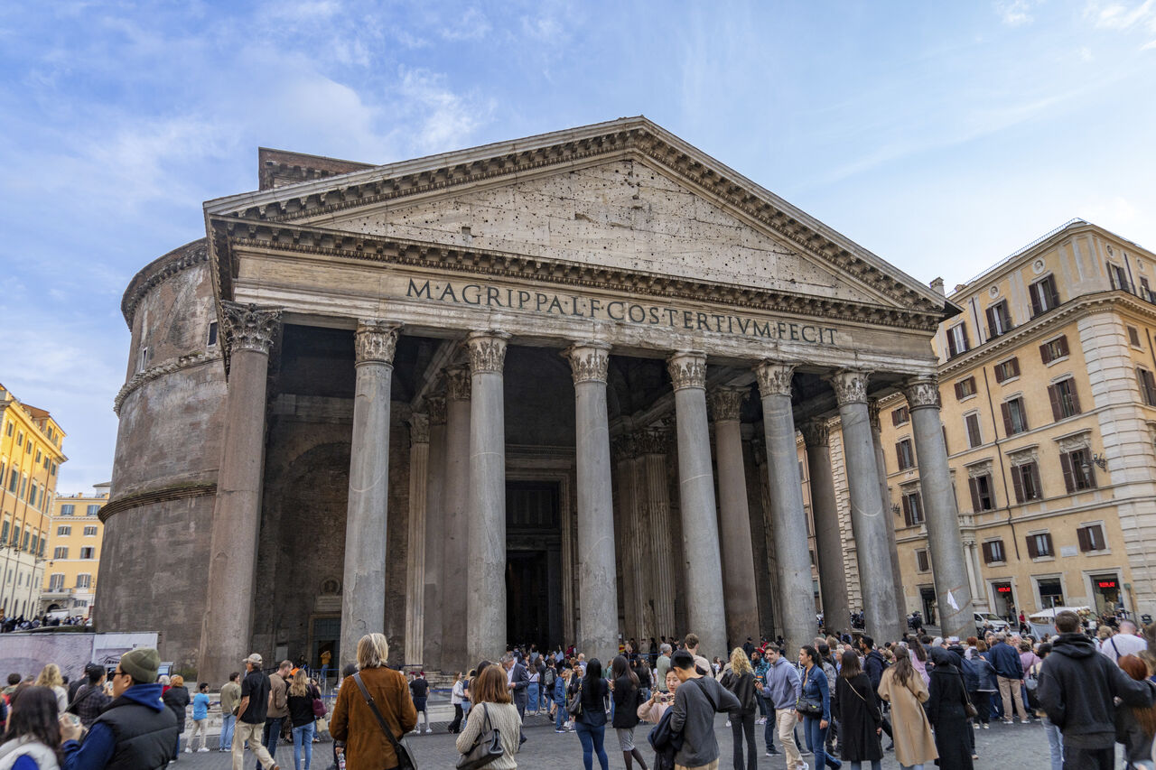 萬神殿由古羅馬皇帝哈德良(Hadrian)建造,以穹頂中央的「天窗」(oculus)聞名,是義大利最受歡迎的觀光景點之一。該地自2023年起收取每人5歐元(約台幣175元)門票,但仍吸引大量遊客,2024年造訪人數突破400萬。