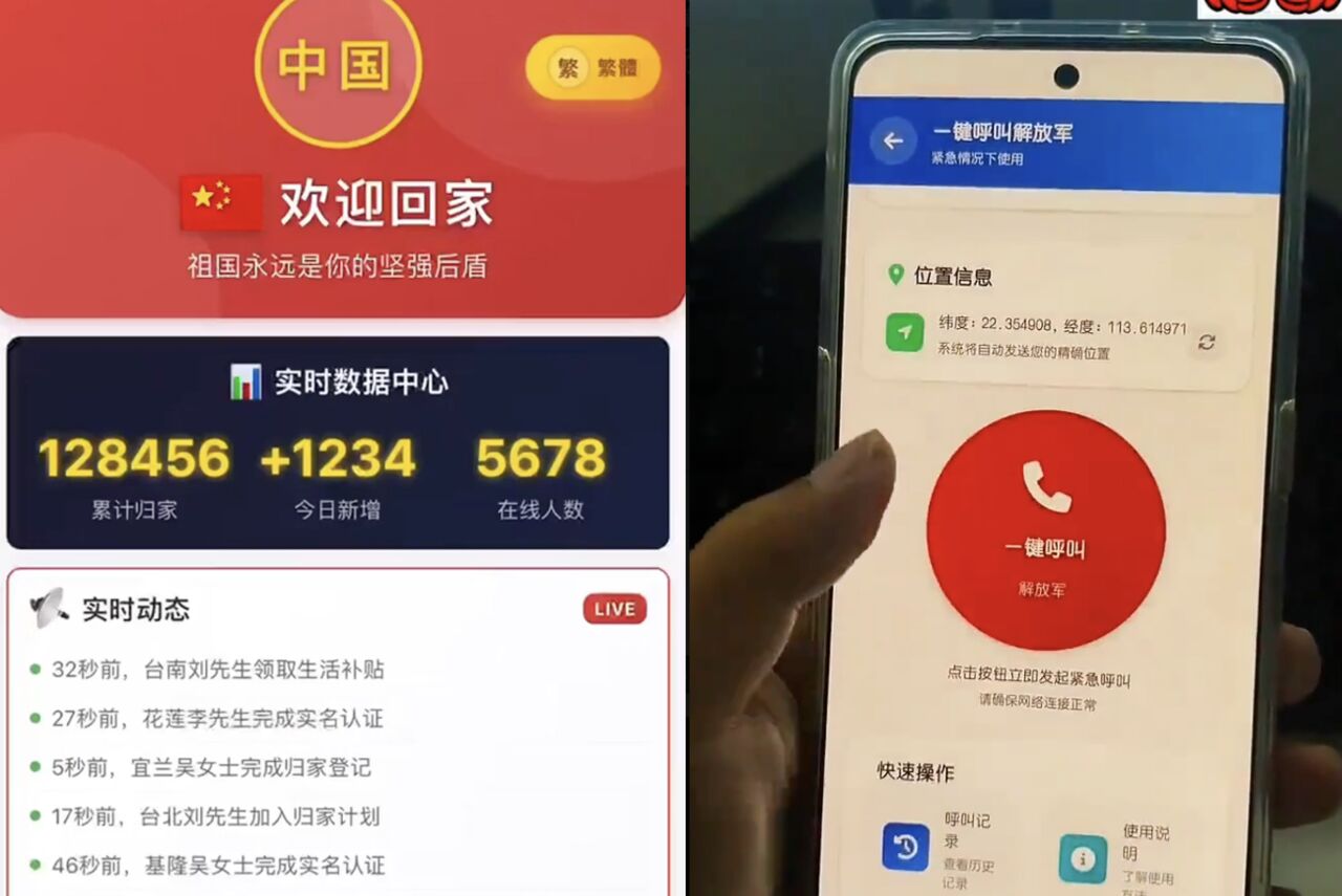影片中也顯示,用戶可在APP實名登記「回歸祖國」的意願,全台總共已有12萬人登記;APP上的排行榜更顯示,台北市的登記人數最多,有多達2.8萬人。