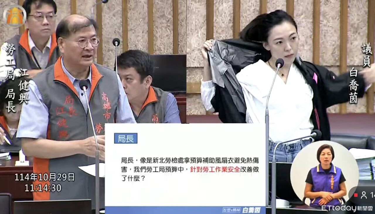 白喬茵今日在議會質詢指出,為減少勞工熱傷害,新北市今年提供140萬預算補助風扇衣,兩週即申請額滿、廣獲好評;勞動部的補助也迅速用罄。她建議高雄市勞工局比照辦理,增列經費補助企業、自營者及勞工購買風扇衣,提升高溫作業安全與舒適度。