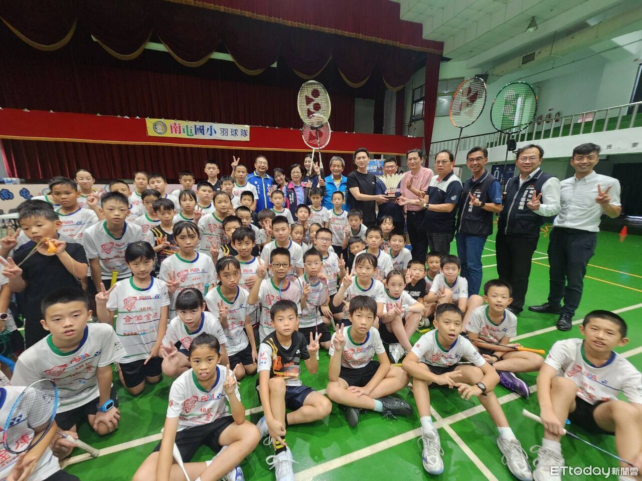 台中市南屯國小羽球隊戰績輝煌,今年剛奪下「YONEX全國羽球團體錦標賽」亞軍,卻面臨訓練用球嚴重短缺的窘境。立委廖偉翔、獲悉後發起捐贈,活動中更赫見昔日「國民女友」侯湘婷,原來她目前的身份是南屯國小家長會長,她的低調現身,成為本次公益活動的意外亮點。