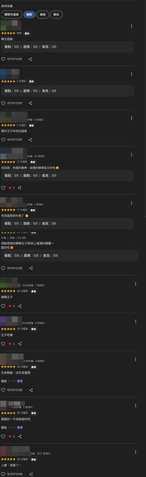 不少網友發現這間店以後,立即留下5星評論,並且附上「粿王遊戲」、「粿仔王子好吃的感覺」、「俗話說:免錢的最貴,這裡的粿便宜又好吃」、「現點現做的粿粿王子再淋上滿滿的粿醬~超好吃」,惡搞意味十足。