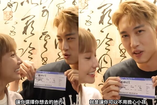 當時范姜彥豐表示,之所以會送空白機票,是希望能讓粿粿能夠暫時不用擔心小孩及工作等煩心事,去想去的地方旅遊、好好出國放鬆。當時夫妻倆還在鏡頭前親吻、放閃,顯得相當甜蜜。