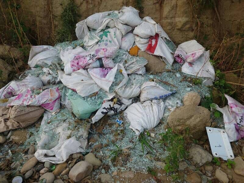 從現場照片可見,除了新傾倒的棧板和玻璃,河岸邊早已堆積了水泥塊、紙箱、保麗龍、寶特瓶等各式廢棄物。民眾憂心,碎玻璃極易造成前來垂釣或抓魚的民眾受傷,而大量廢棄物更已對貓羅溪的自然生態造成嚴重衝擊。