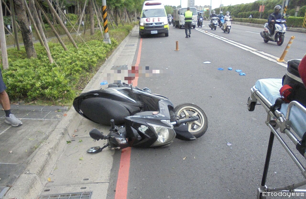 ▲▼王男與大貨車擦撞後倒地,送醫不治。(圖/記者陸運陞翻攝)