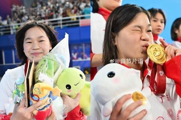 全紅嬋在頒獎台上,還高舉吉祥物娃娃,接受這睽違半年來,給予冠軍的喝采。不少粉絲笑稱,「全紅嬋奪冠後秒變顯眼包!」她賽後也開心在微博發文,「我真棒。」慶祝自己回歸賽場,並首場即奪冠的好狀態。