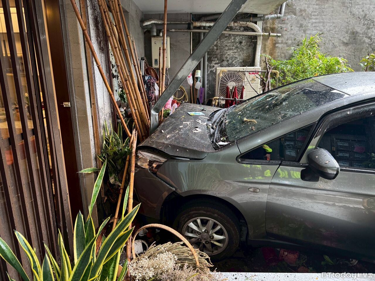 ▲74歲凌男誤踩油門,車子衝進民宅內 。(圖/記者陳以昇翻攝,下同)