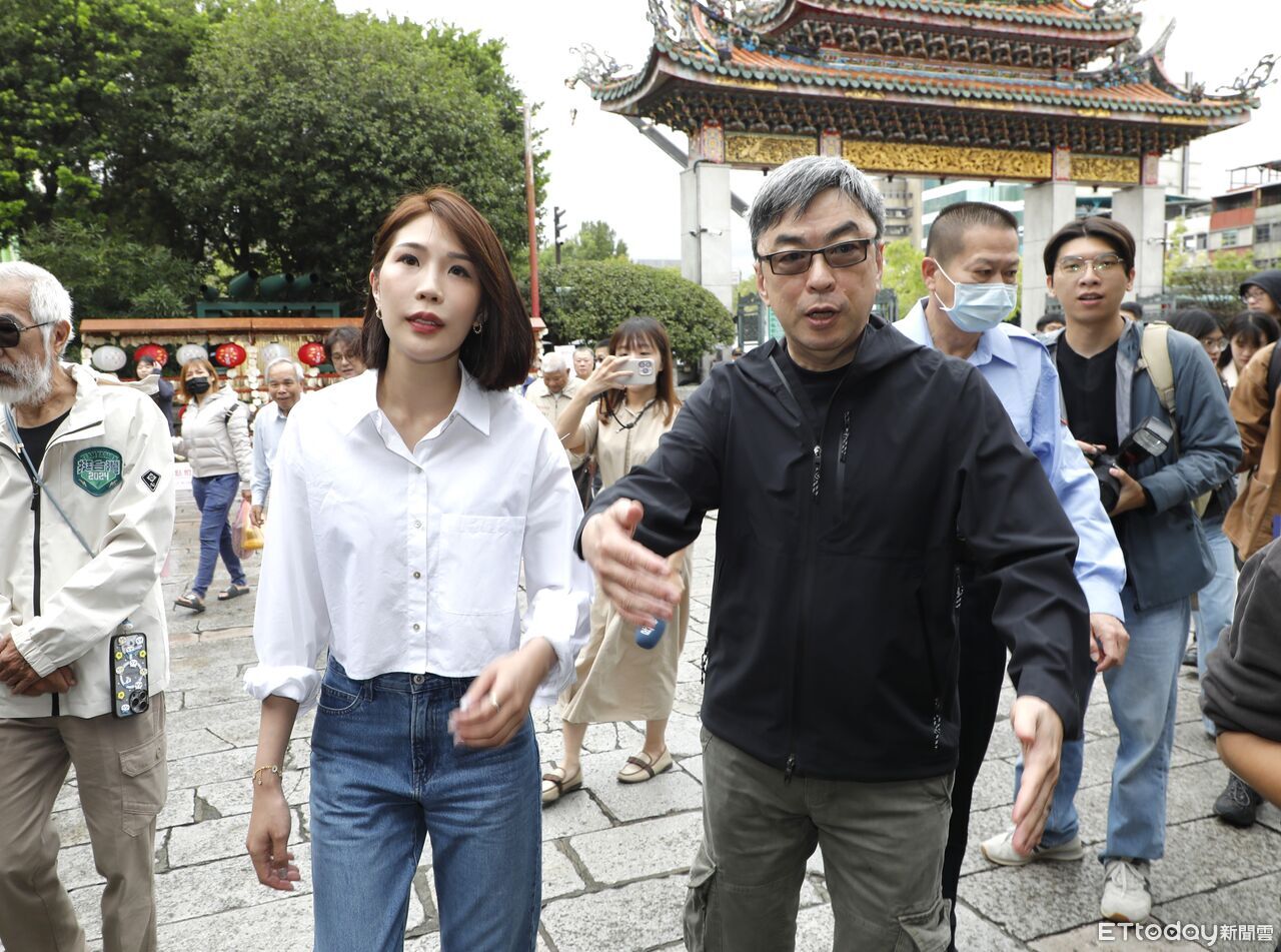 ▲前三立記者馬郁雯正式宣布參選,並找來前立委段宜康陪同一起去龍山寺拜廟。(圖/記者湯興漢攝)