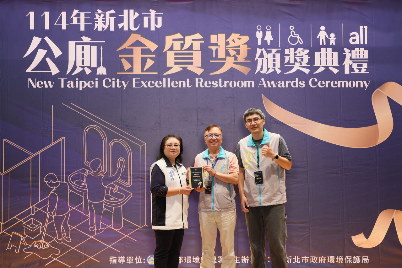 經評審委員進行預警式評比及秘密客突擊考評後,最終選出80處公廁管理單位榮獲「金質獎」,並評選出21位金質績優清潔人員。此外,環保局延續去年「永續公廁獎勵制度」,鼓勵廁齡逾30年、硬體設施較老舊但仍維持良好整潔度的大齡公廁參與,今年共有8處單位獲頒「永續公廁模範獎」。