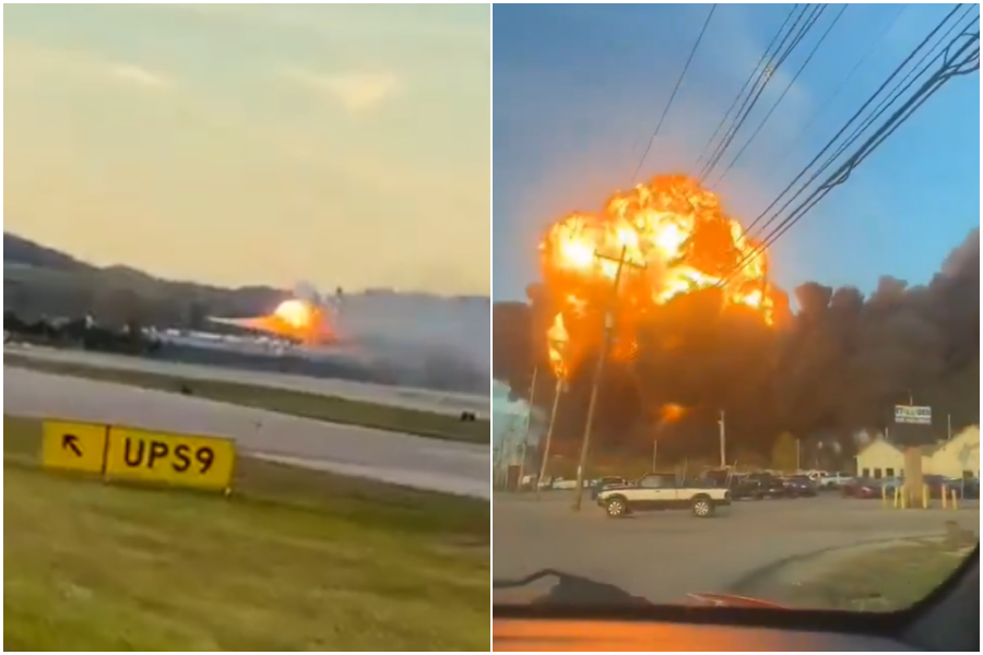 ▲ UPS貨機起飛後不久墜毀,爆出巨大火焰與濃煙。(圖/翻攝自X)