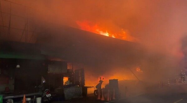 ▲桃園最大市場南門市場大火。(圖/消防局提供)