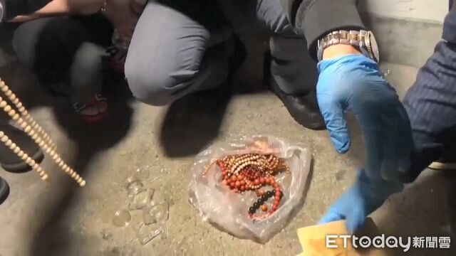 ▲▼警方在陳姓主嫌女友台北市中山區租屋公寓處樓梯間夾層,起獲裝在塑膠袋內的南方澳進安宮珊瑚媽祖失竊的所有珠寶。(圖/記者游芳男翻攝)