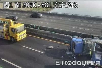 國道1號南下310公里處、靠近安定交流道,7日清晨7時33分發生3車連環事故,1輛小貨車在內線翻覆,另1輛小貨車佔用部分中線,大貨車則停在外線,現場僅剩中線可通行,導致車流瞬間回堵,路段嚴重塞車。 國道警察第四大隊指出,事故尚在排除,初步傷亡仍在確認中。由於現場封閉兩線道,建議南下車輛提前改走台84,以避開壅塞路段。事故成因將待進一步調查釐清。