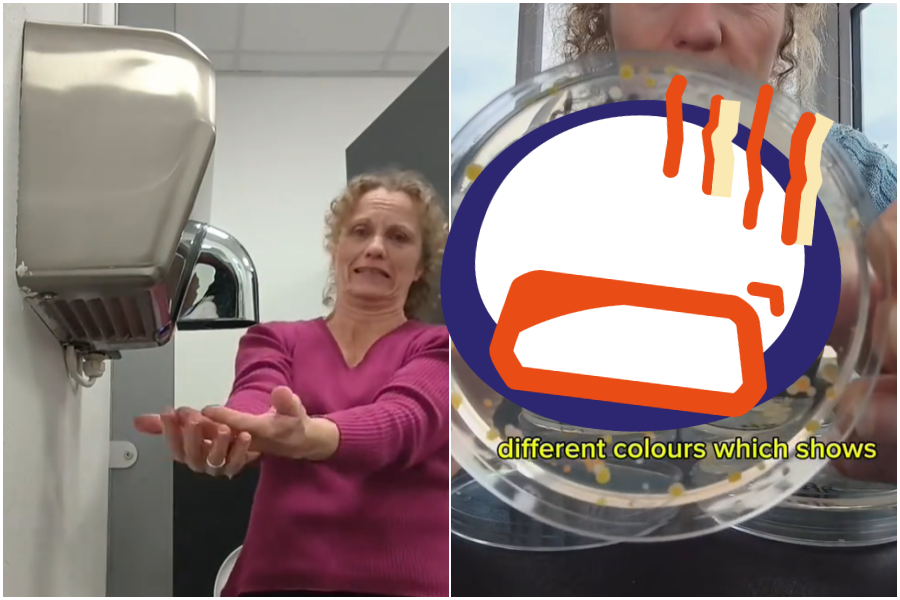 英媒Devon Live報導,麥克拉倫是Devon Science教育計畫創辦人,先前在TikTok上分享實驗過程,她將培養皿放置於公廁烘手機下方,收集吹出的空氣樣本,同時另取一個培養皿在一般空氣中揮動作為對照組,經過隔夜培養後,結果令人震驚。