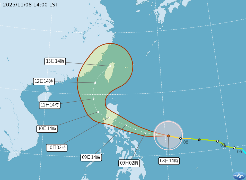 張竣堯進一步指出,鳳凰颱風今天下午2點位於鵝鑾鼻東南方1420公里海面,未來路徑往西北西前進登陸呂宋島,通過後將進入南海,並北轉接近台灣,下周三晚間到下周四清晨不排除登陸西半部包含中南部,甚至往北一點的桃園、新竹、苗栗都有登陸機會。