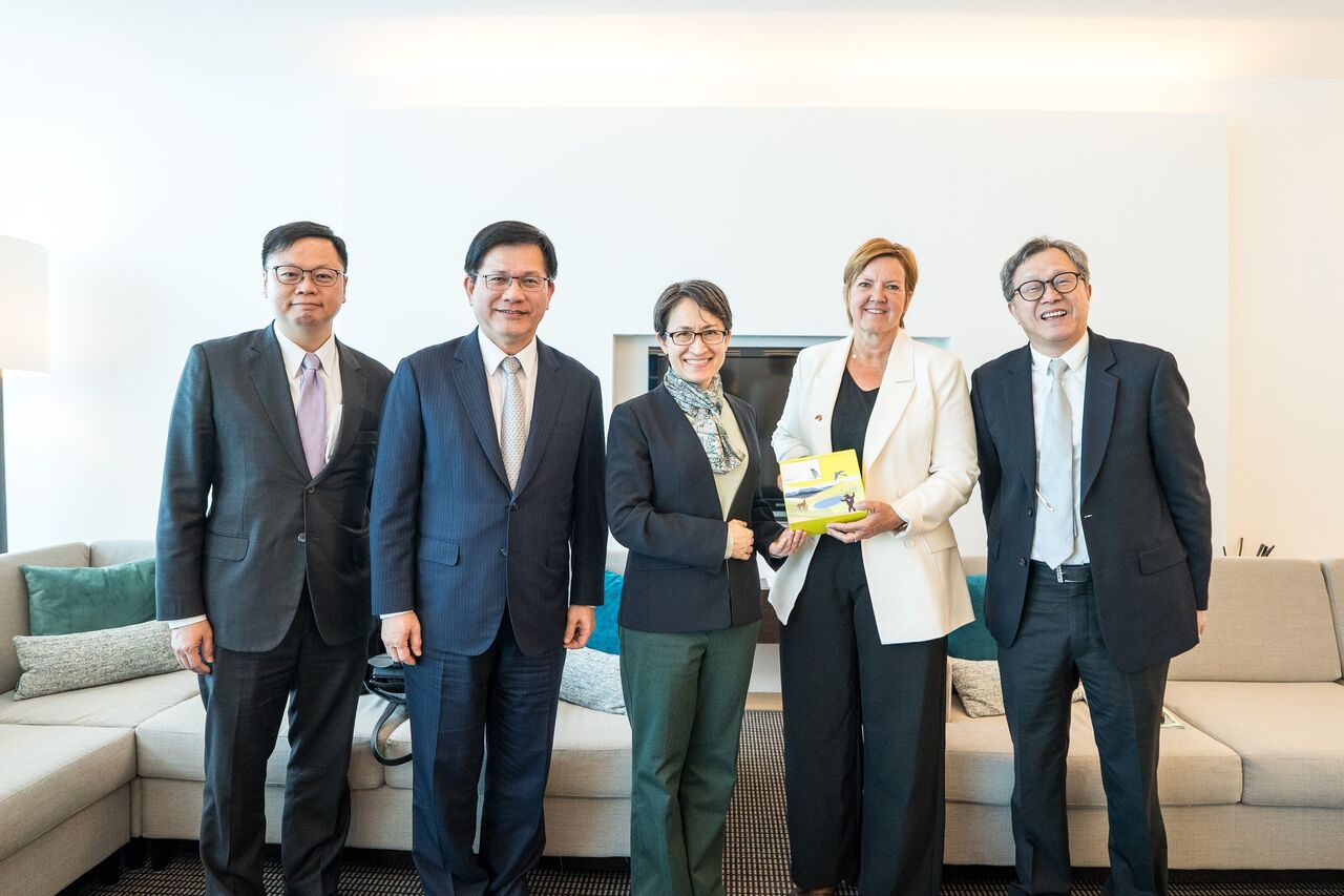 ▲擔任IPAC比利時共同主席的比利時眾議院外交委員會主席Els Van Hoof(右二)接機歡迎副總統蕭美琴及外交部訪團一行。(圖/翻攝自Facebook/林佳龍)