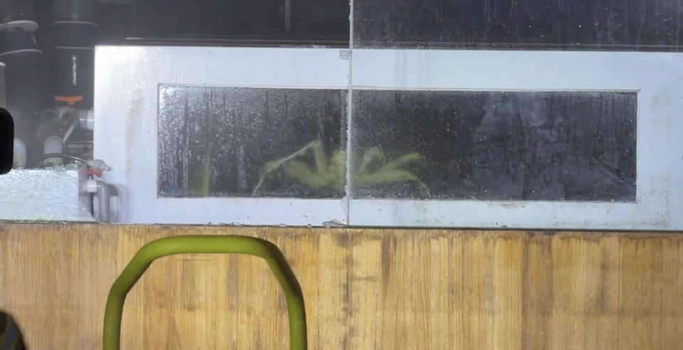 目擊者指出,火勢最初從冷凍櫃後方竄起,「整面牆都在冒火」,有人想打破玻璃滅火卻失敗,只能緊急報案。現場畫面可見,活體帝王蟹、龍蝦在高溫中躁動揮舞大螯,看起來像在拼命求生,畫面頗為驚悚。