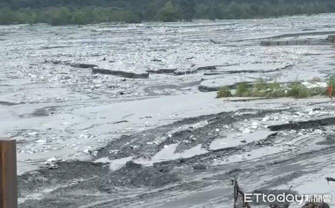 ▲馬太鞍溪新堰塞湖提早發生溢流,泥水狂奔。(圖/林業署花蓮分署提供,下同)