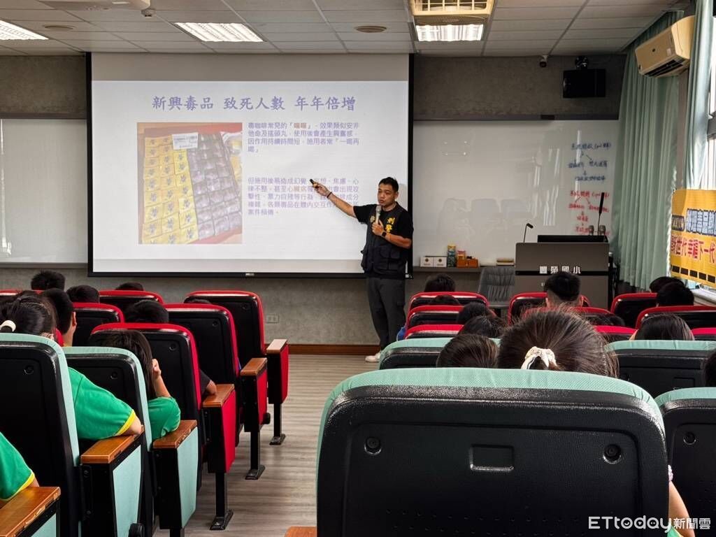 ▲少年隊走進豐榮國小推法治教育、反毒識詐觀念向下扎根。(圖/記者楊晨東翻攝)