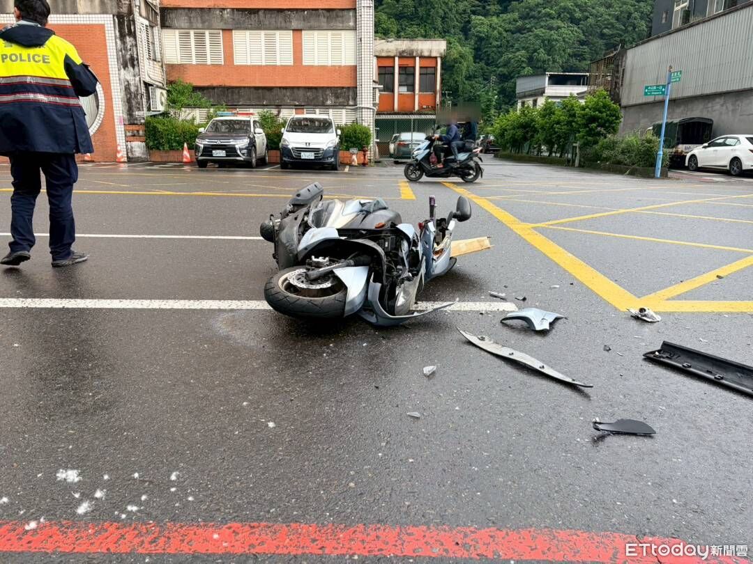 ▲▼機車與休旅車碰撞後,機車頭全毀。(圖/記者游芳男翻攝,下同)