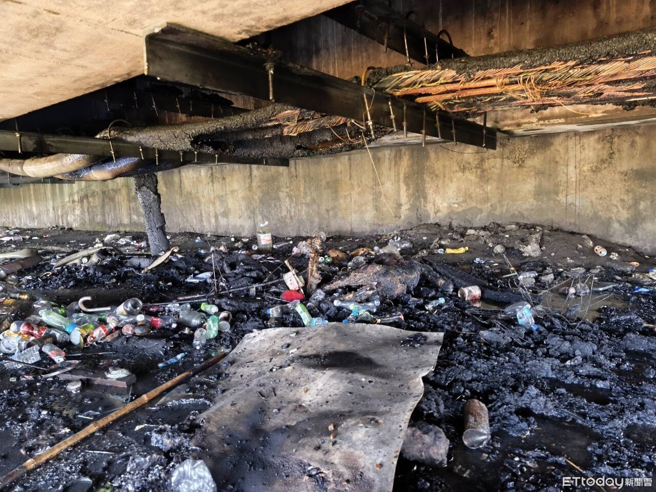 ▲台中一名溫姓街友在西柳橋下被大火燒死。(圖/記者許權毅翻攝,下同)