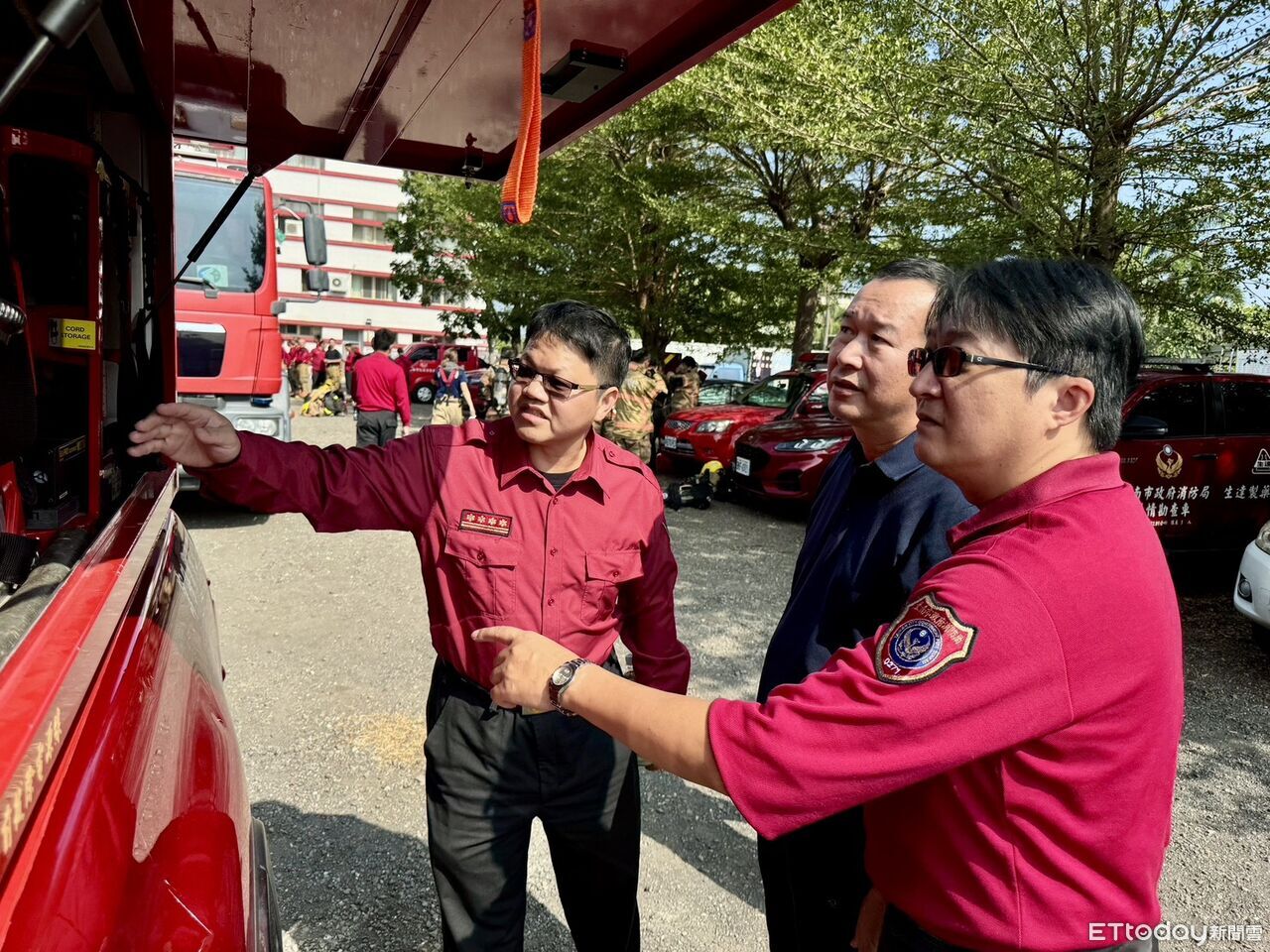 ▲新竹縣消防局參訪團於台南市消防局共識營,台南消防局展示高壓細水霧與快速布線部署流程,呈現科技救災成果。(記者林東良翻攝,下同)
