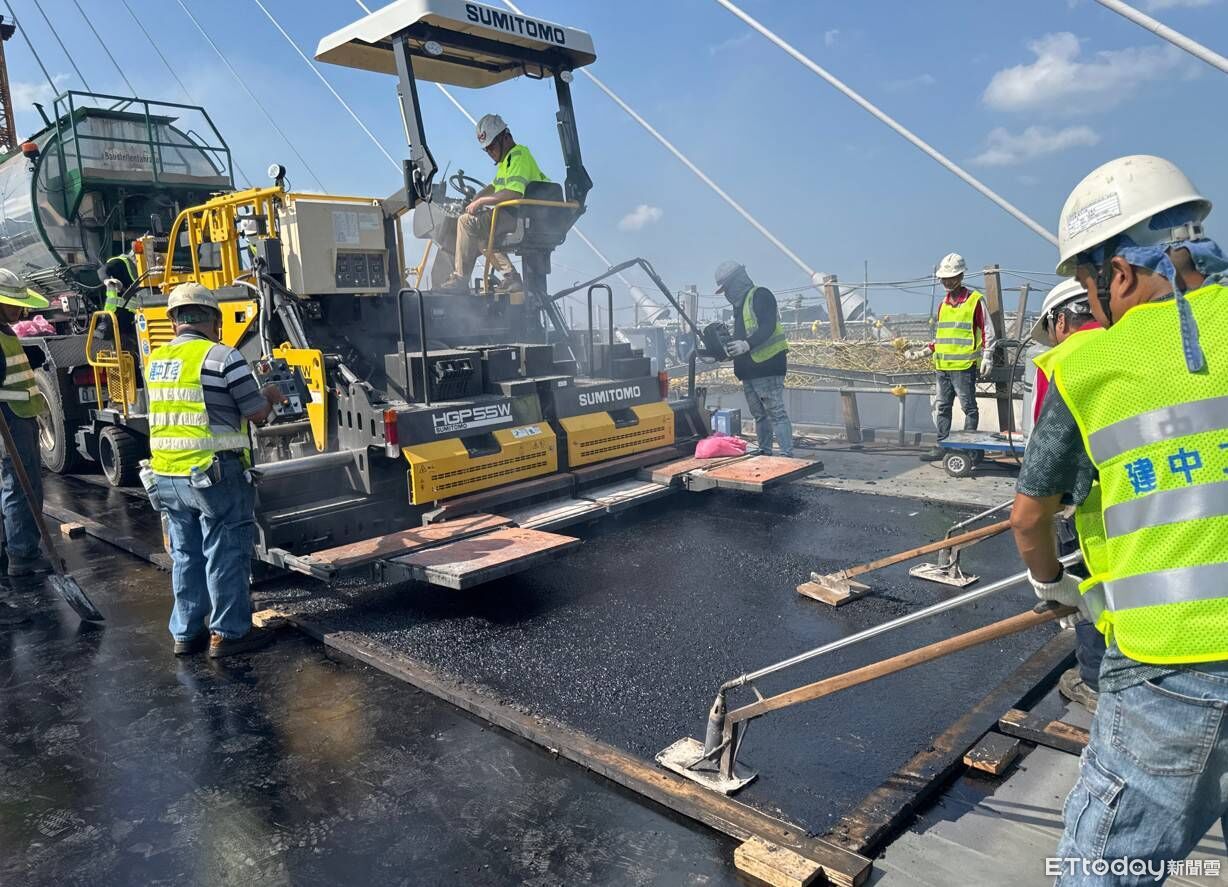 ▲淡江大橋GUSS瀝青鋪面作業預計年底完成。(圖/公路局提供)
