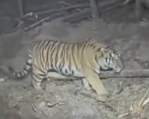 陸媒《極目新聞》報導,根據網友發佈的影片,挖掘機師傅在林中道路偶遇一隻東北虎過馬路,因挖掘機燈光較亮,可以清楚看到老虎從馬路上跳進一條窄溝,在溝裡走了幾步後,然後緩緩走進樹林,其間扭頭和挖掘機師傅對視了幾秒。