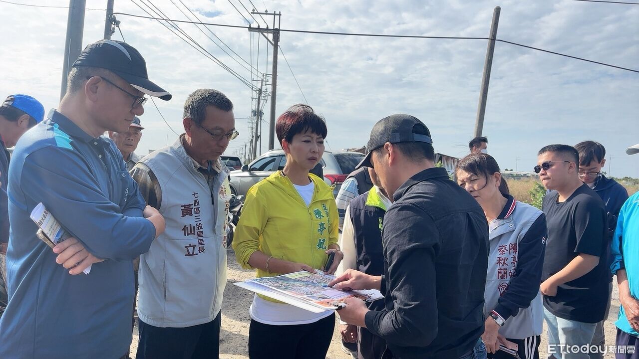 立委陳亭妃4日會同水利署第六分署、台南市水利局、市議員蔡秋蘭、七股區公所及里長黃仙立前往會勘,要求市府務必將遭刪減的項目列入後續工程並全數補上。